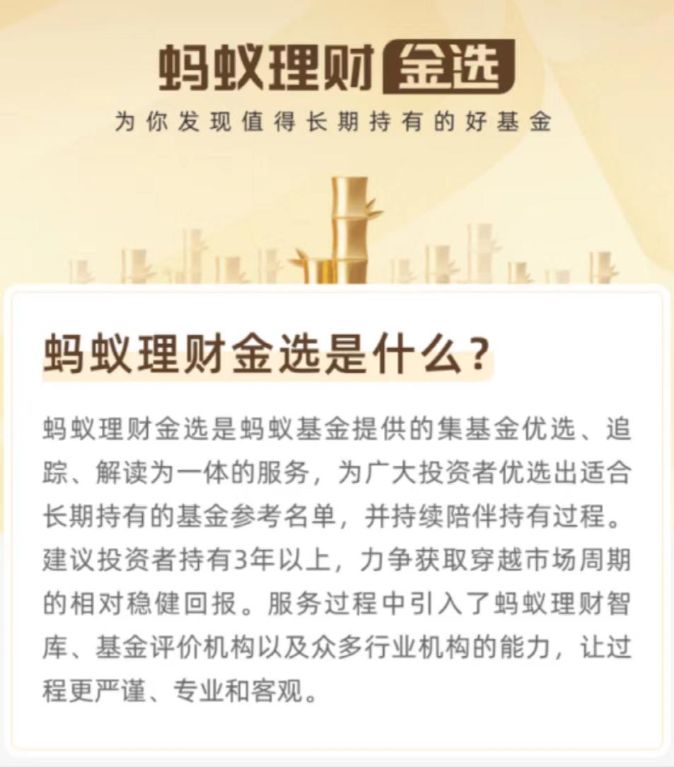 从蚂蚁财富APP来看,针对蚂蚁理财金选也有专门的介绍。
