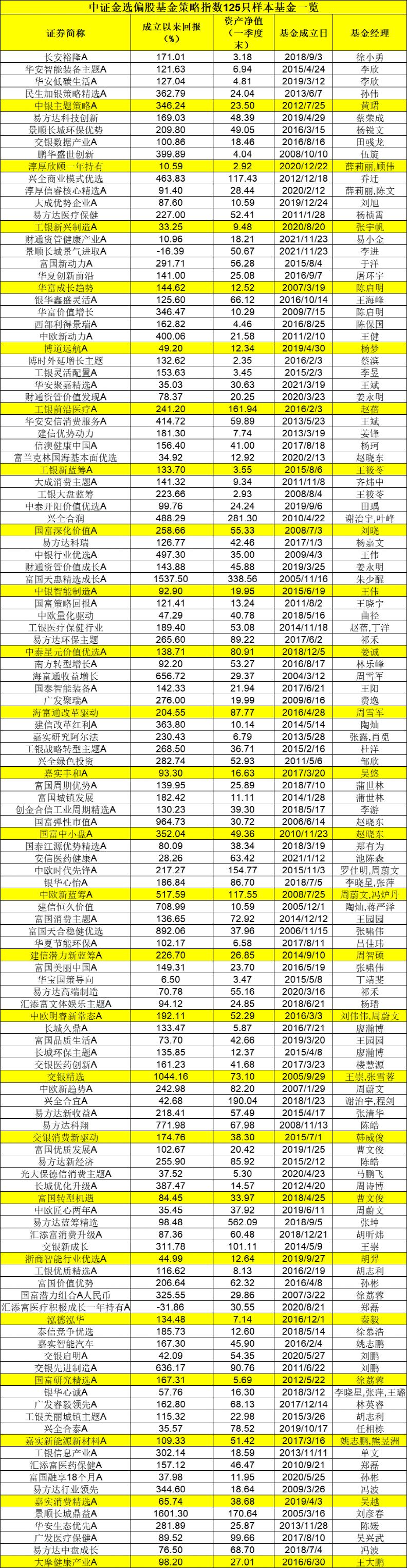 据悉,中证指数公司日前发布了中证金选偏股基金策略指数,首批成分基金来自40家基金管理人,125只偏股基金“入围”!大部分“入围”产品为知名基金经理管理,张坤、刘彦春、周蔚文等超高知名度基金经理掌舵的基金均在列。