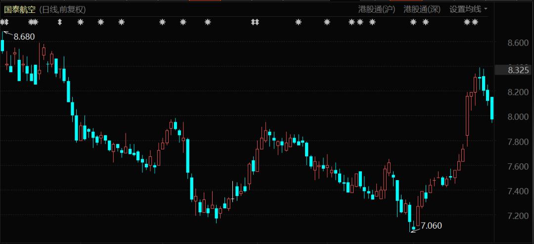 再看国泰航空的股票表现。5月23日毛毯风波爆出之后,国泰航空股票在6个交易日内有5日下跌,从7.62港元跌至7.08港元,跌幅为7.09%。但此后,国泰航空股票迅速反弹,并持续上涨至目前的8元以上,几乎没有受到任何影响。这段时间的市值规模反而比毛毯风波时增长了10%以上。