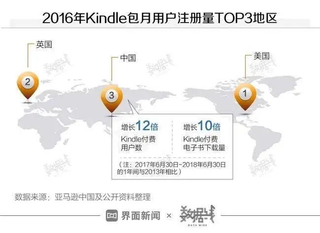 根据界面数据线整理的亚马逊中国数据,在2013年至2018年的5年时间里,Kindle电子书阅读器在中国累计销售数百万台,中国市场已经成长为亚马逊Kindle设备的全球第一大市场。