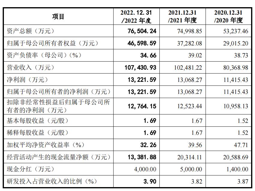 招股书显示,2020 年度、2021 年度、2022 年度(以下简称“报告期”),皇派家居的营业收入分别为8.04亿元、10.25亿元和10.74亿元,扣除非经常性损益后的净利润分别为 1.10亿元、1.25亿元和 1.28亿元。