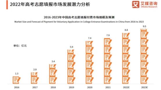 根据相关数据显示,2021年中国高考志愿填报市场付费规模达7.9亿元,预计2023年这一数字将达9.5亿元。