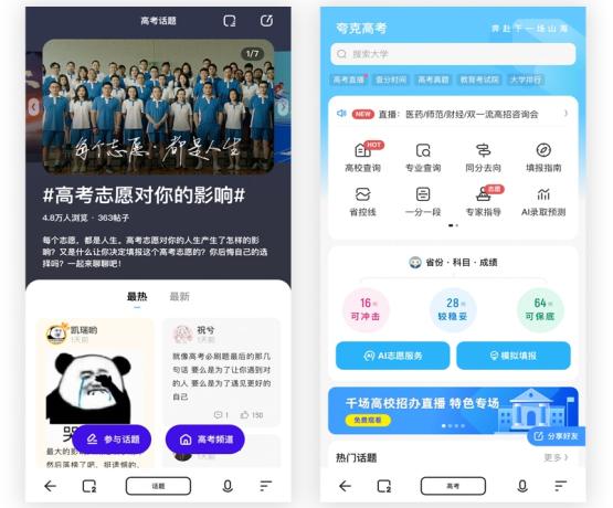 大部分考生对于学校信息的了解和填报,也开始借助“AI工具”。如夸克、百度、网易等互联网平台提供的免费智能志愿填报系统。
