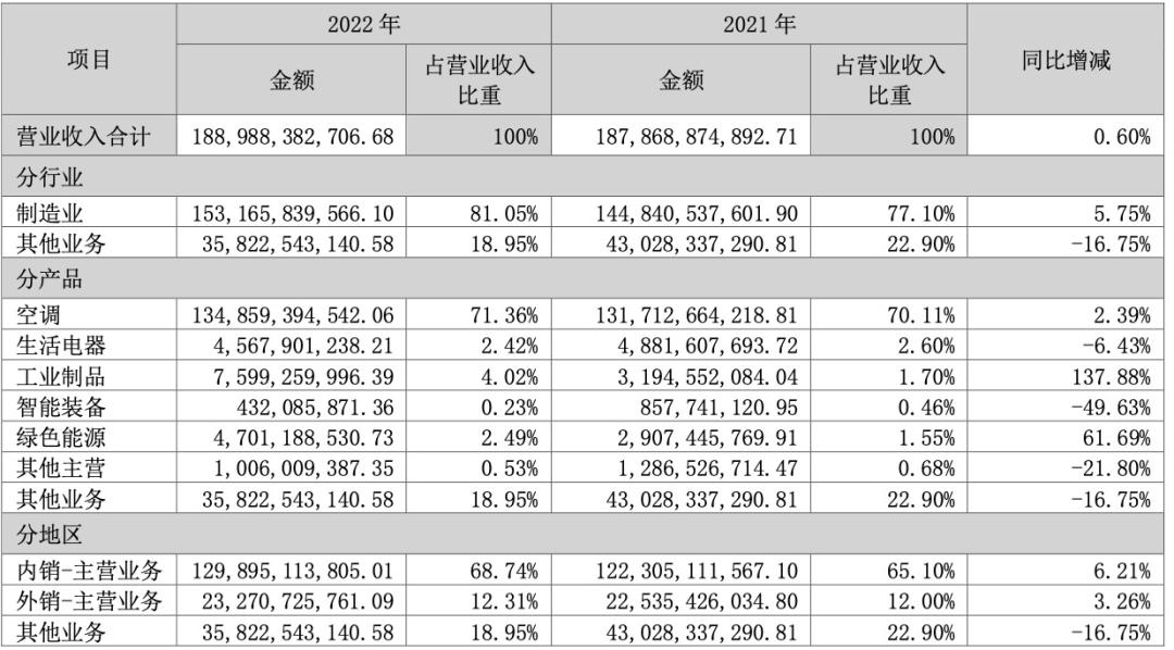 以格力为例,2022年,格力绿色能源板块收入为47亿元,同比增长62%,这也是格力今年主营业务中,同比有所增长的业务之一。