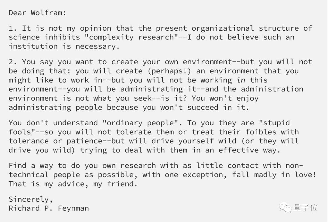 当时费曼认为,如果Wolfram去做管理工作,不是把自己逼疯,就是被“普通人”逼疯。