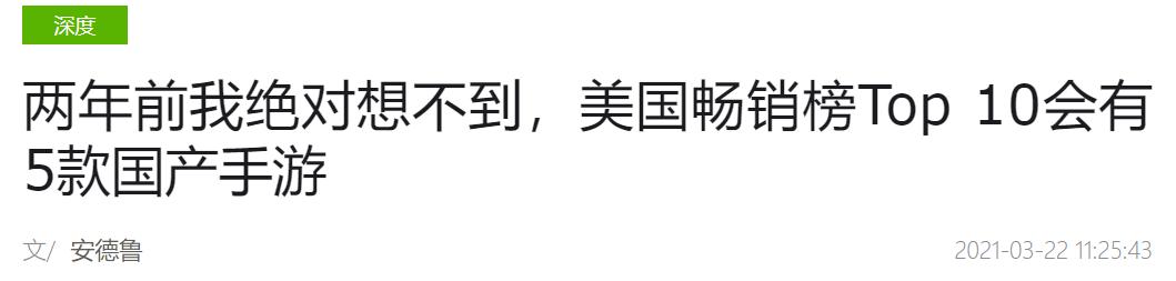 “Top 10里有4~5款常驻的国产游戏,Top 20里有8~9款,半个月出现在Top 50里的有16款。”这是我们在2021年初观察到的纪录。