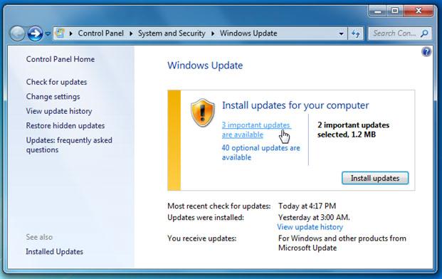 在 Windows 7 及之前的版本,微软将更新分为两个大类:一类为「重要更新和可选更新」,其中重要更新包括了安全补丁、错误修复和性能改进,而可选更新主要包括硬件驱动更新、功能升级和其他非关键性修复。这类更新通常能在 Windows Update 中看到。