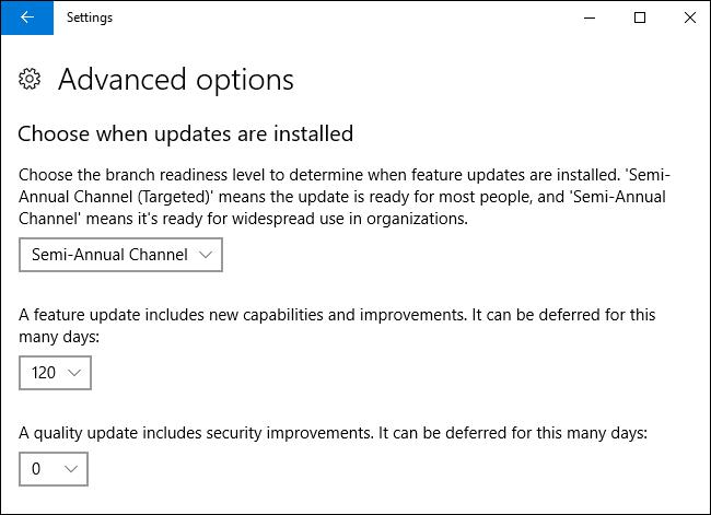 Windows 企业版曾经可以选择半年频道(Semi-Annual Channel,SAC)更新模式,也就是每半年会收到一次功能更新;但半年频道累积更新不会被推迟,通常还是每个月 1 次。不过半年频道目前已经被推迟版本更新功能给替代了。