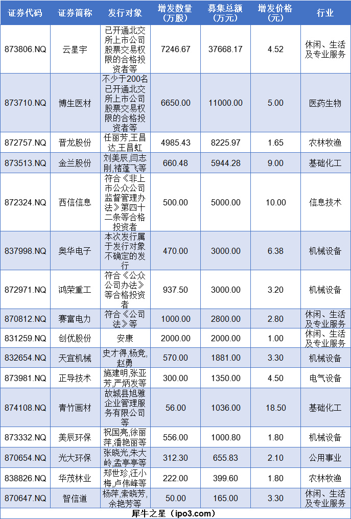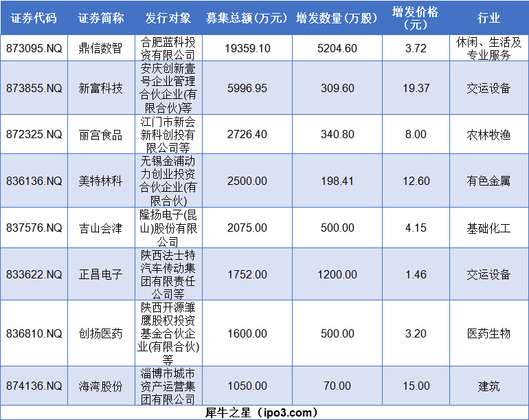 新三板本周8家公司完成股票增发上市,共募资3.7亿元