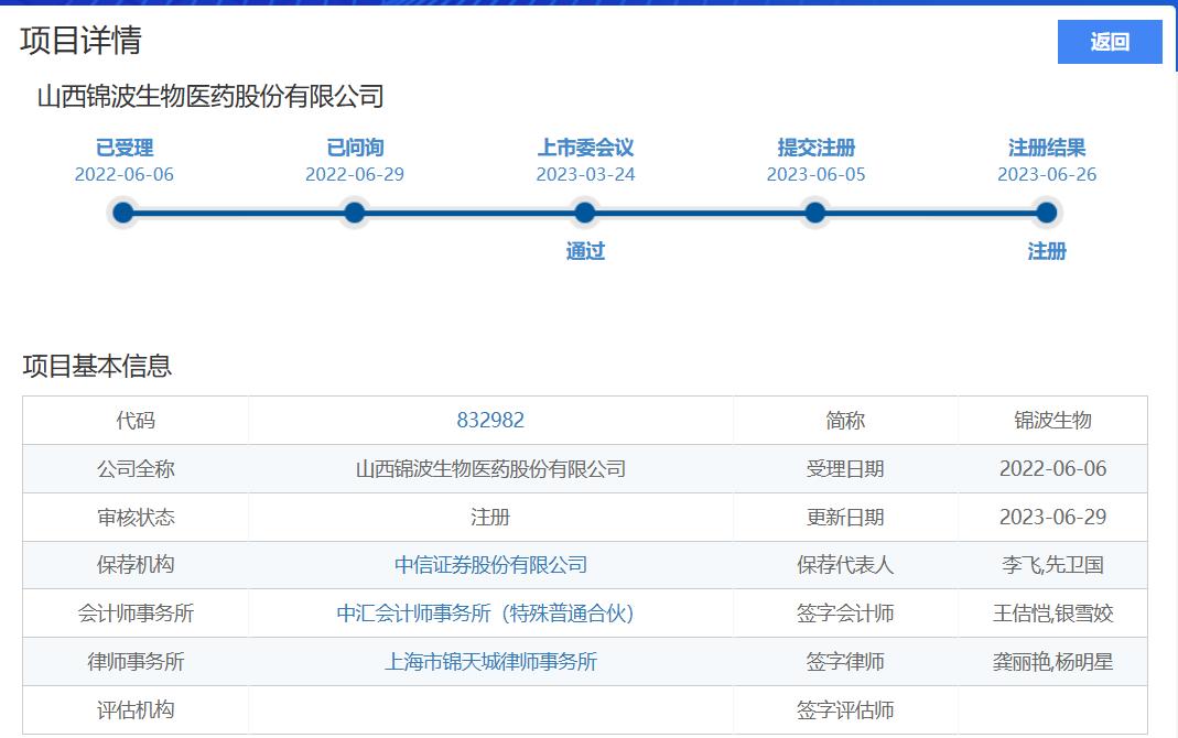 6月29日,北京证券交易所(以下简称:“北交所”)公布了《关于同意山西锦波生物医药股份有限公司向不特定合格投资者公开发行股票注册的批复》。