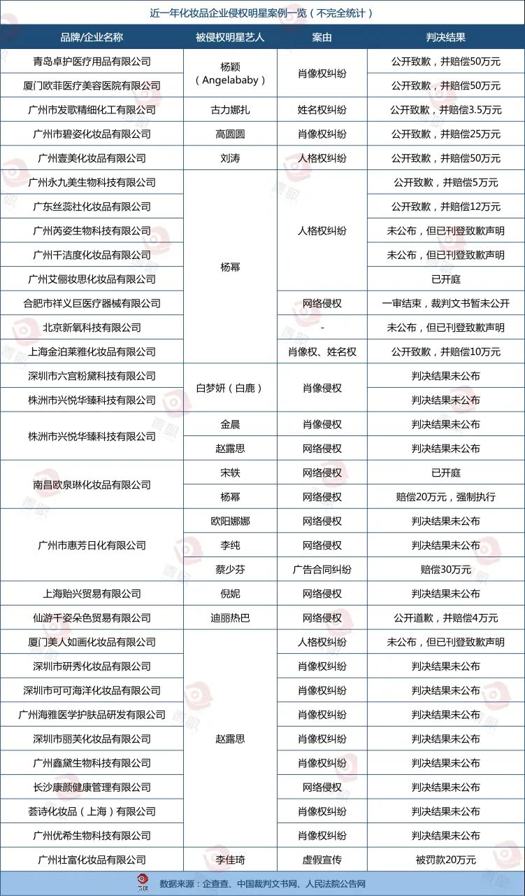 青眼进一步调查发现,近一年至少有29家化妆品相关企业被明星起诉,从已公开判决来看,基本上明星一告一个准。碰瓷明星这桩灰色生意,该停停了。