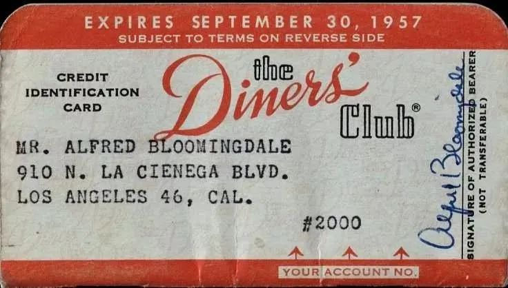 1951 年,商人弗兰克.麦克纳马拉建立了一个组织 Diners Club(大莱俱乐部),消费者只要加入,都可以拿到一张会员卡,可以在会员商店凭卡消费。