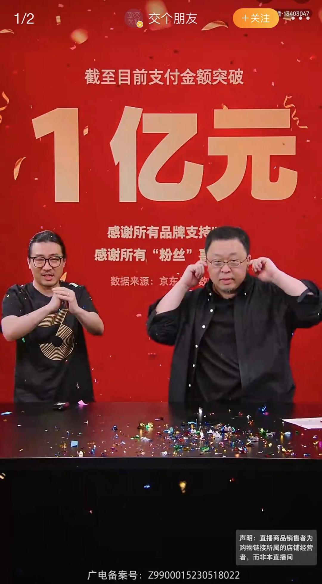 因此,今年4月初,京东与交个朋友合作,交个朋友已在京东直播开设账号、并尝试直播,随后在5月20日之后也大幅提高了频率,由此前的三天左右一播改为日播。截至目前,其账号粉丝量已超过33万。