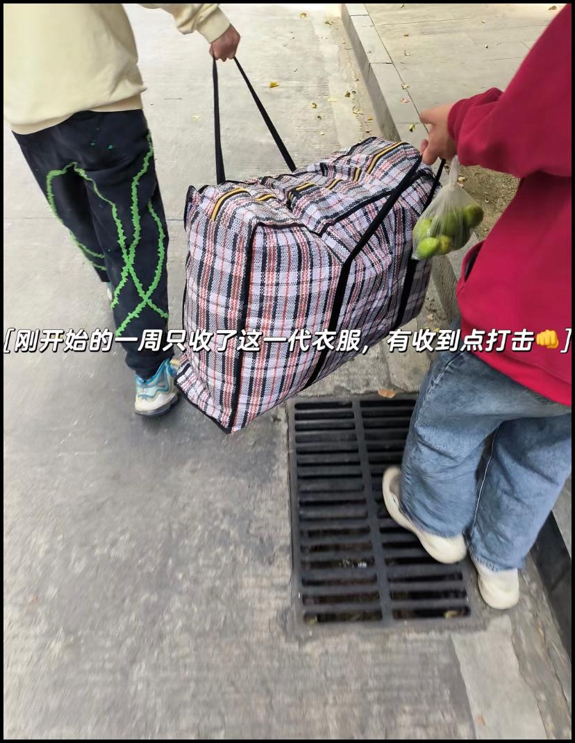 回收旧衣物,第一步最重要的就是打开收货渠道,找到货源。尽管每家每户都有旧衣物被淘汰,但业务的宣传并不理想,线下收货十分困难。“一开始线下收货一直亏损,线下人群做不精准,而且还要上课,没有办法去兼管线下。”他们在市区发了整整一周,到头来却只收到了20斤衣服——在这个业务量按吨计算的行业里,几乎是杯水车薪。