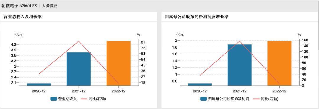 报告期内,朝微电子的业绩持续增长,但2022年公司营收、净利润增长速度都明显放缓。