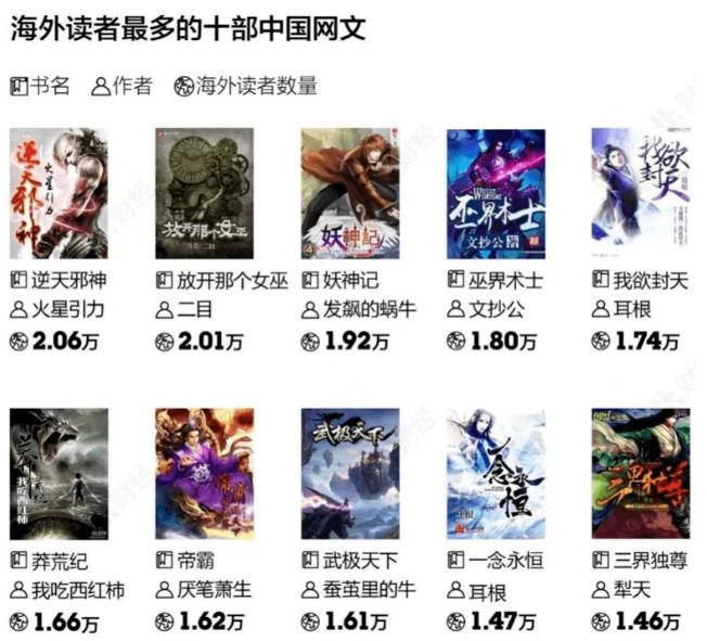 中国网文除了风靡亚洲国家,也在美国、英国等欧美国家搜刮了大量粉丝。