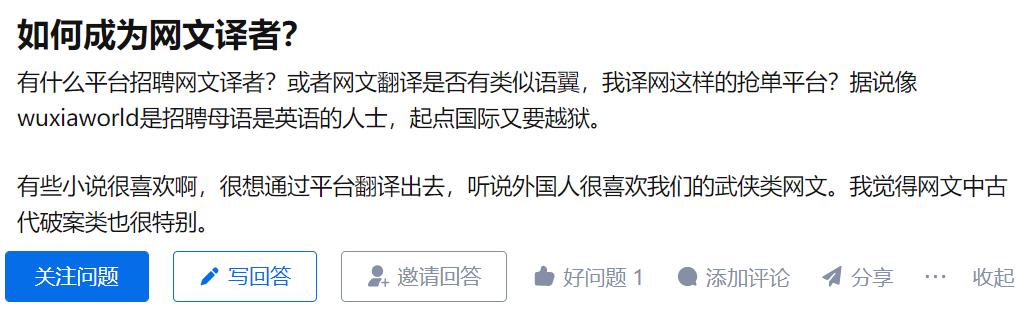 狐妹一个英语专业的朋友看到别人赚钱狠狠心动,这两天一门心思搜索:如何成为网文译者?