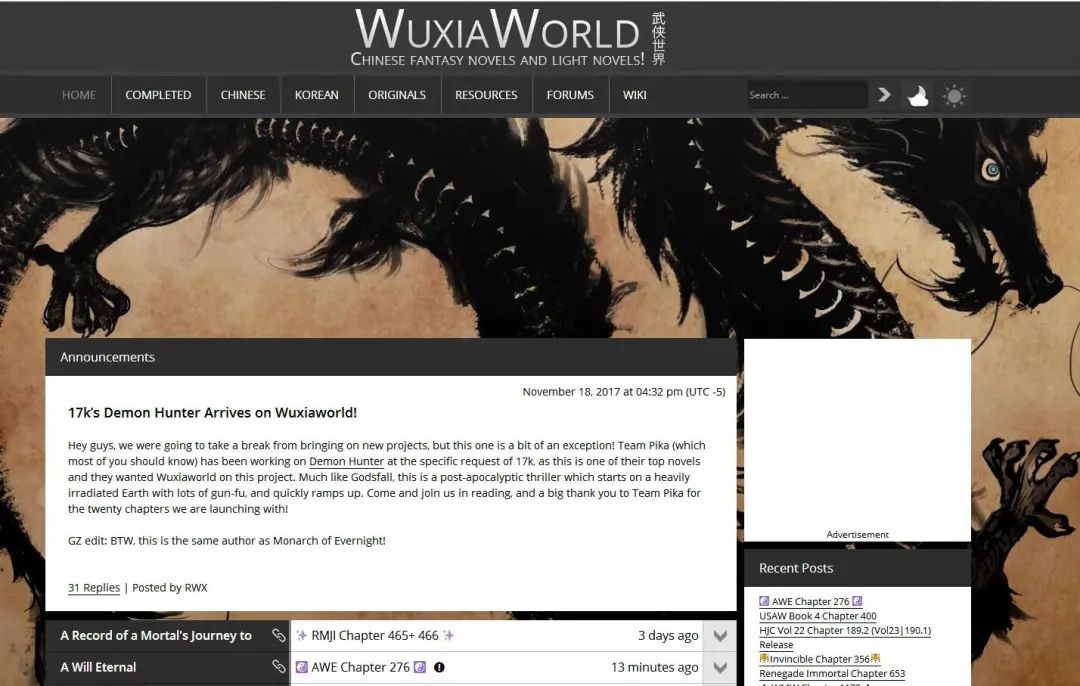 在他的努力经营之下,WuxiaWorld 火爆程度直线飙升,受到了全世界网友们的追捧。