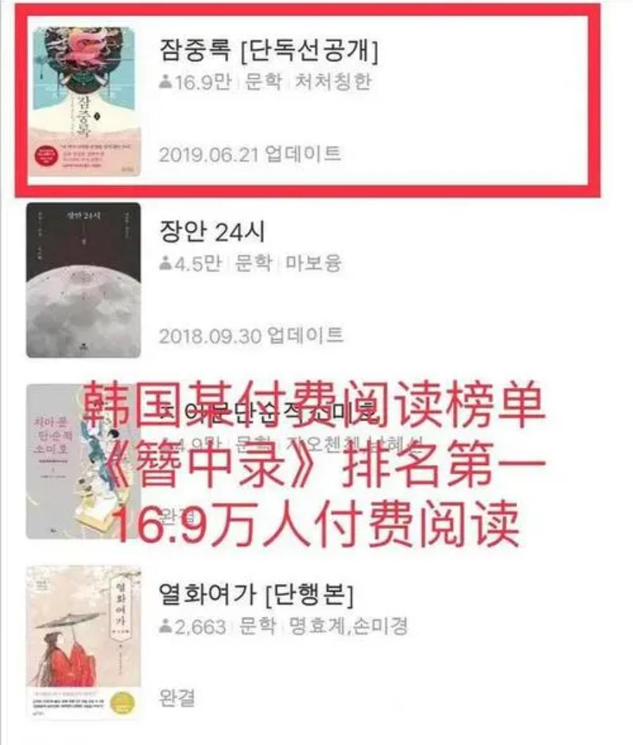 隔壁韩国就更不用说了,网文《簪中录》常年霸榜韩国最大的阅读网站榜首,十几万人付费阅读。