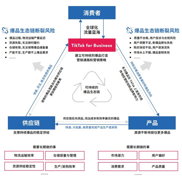 以TikTok为核心平台,驱动可持续的爆品经营生态链,图片来源:TikTok for Business《社群电商爆品营销白皮书》