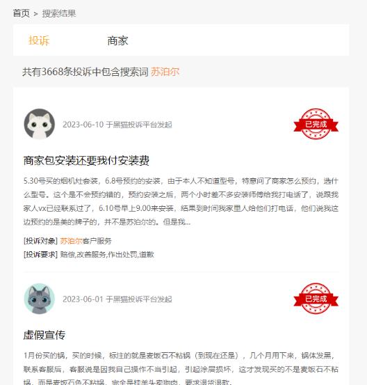 这其中原因,自然有屡屡被诟病的质量问题。在黑猫投诉平台上,涉及苏泊尔的投诉合计高达3668条,这其中的投诉内容主要为产品质量差、售后服务差、虚假宣传、不发货与不退款等。