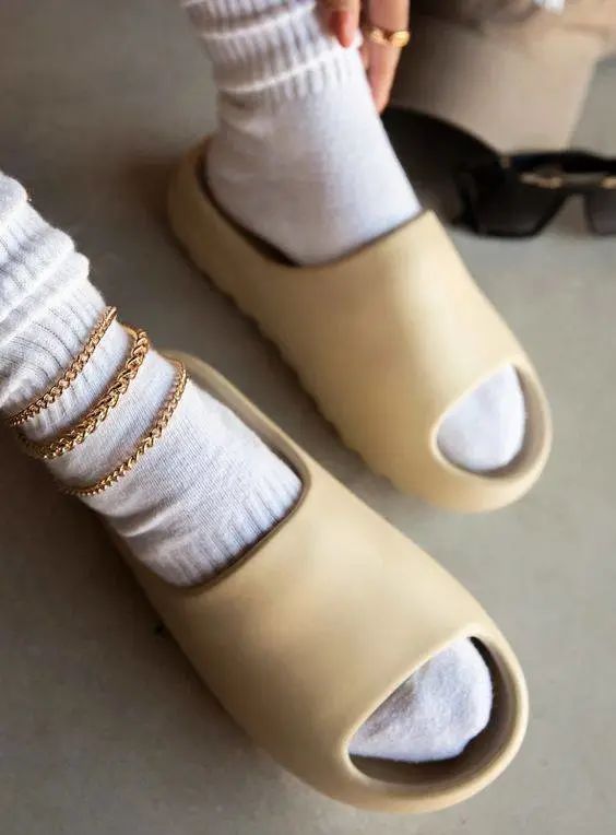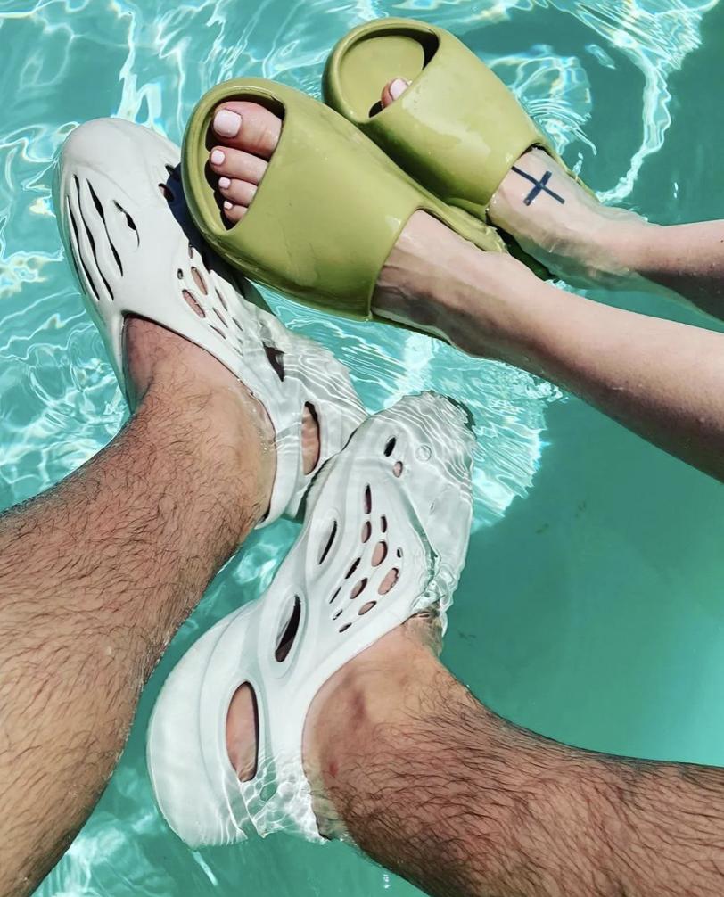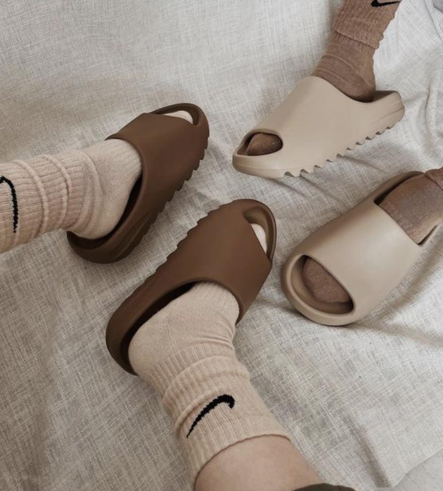 即使过了这么多年,Yeezy 拖鞋系列始终有着一鞋难求的热度,明星、时尚博主几乎人手一双。
