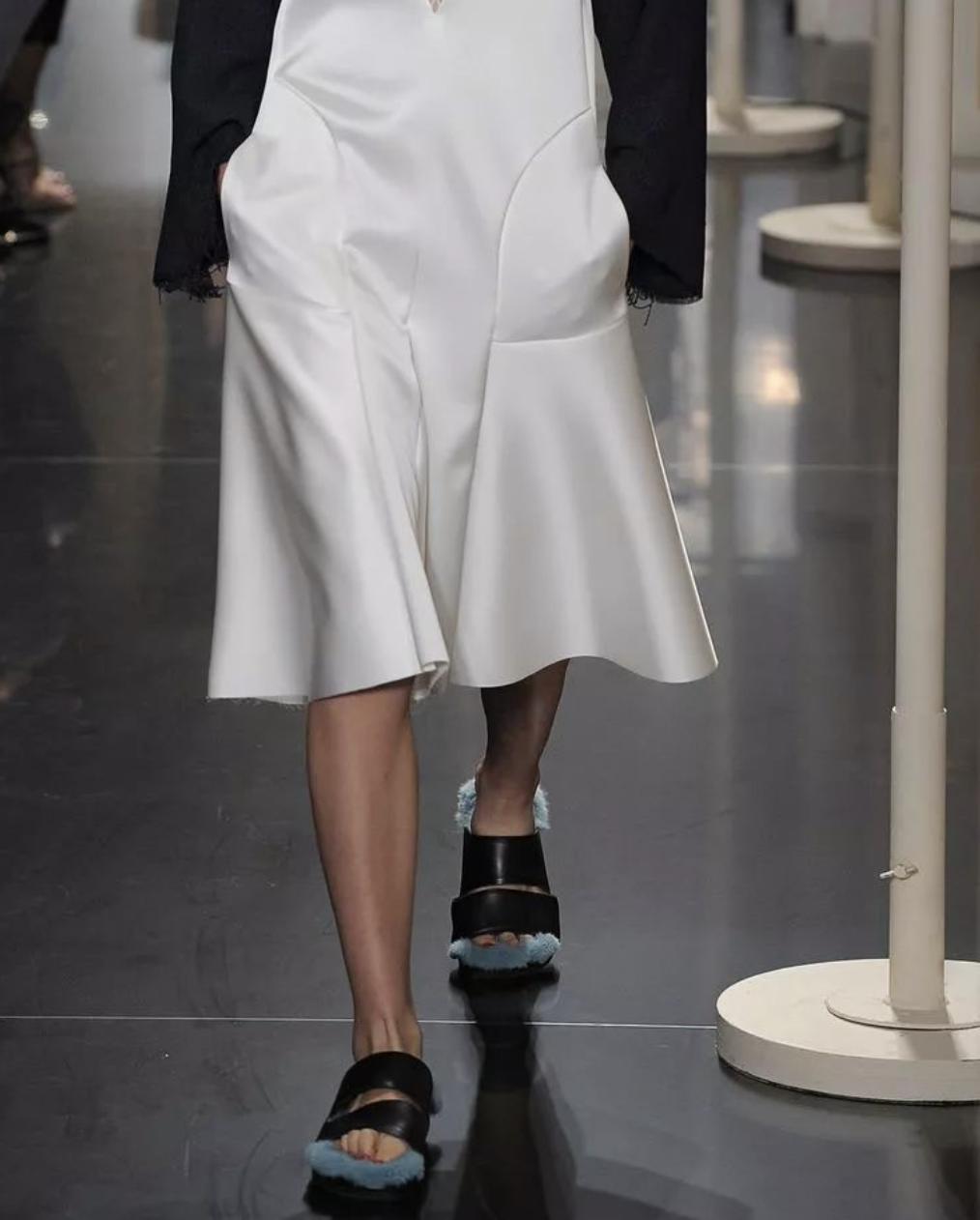 像很多秀场上,也总是能够见到用拖鞋来搭配服装。