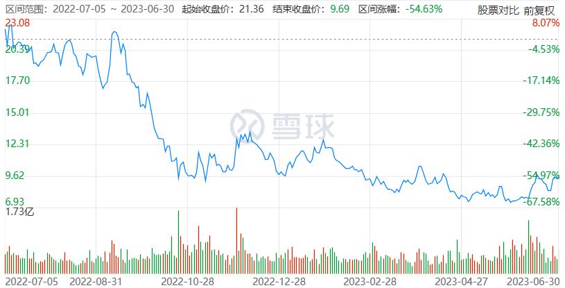 近一年来,蔚来股价喋喋不休 截图于雪球