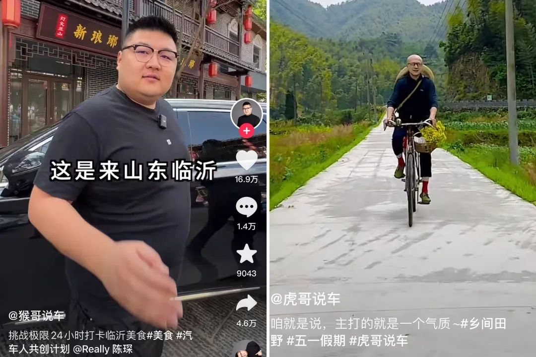 从去年开始,卡思数据就观测到众多汽车头部账号不约而同地开启了内容上的跨圈转型之路,比如我们熟知的@猴哥说车、@虎哥说车、@八戒说车等,都纷纷在自己的账号中加入了大量美食探店、生活vlog、和其他达人联动等与汽车相关性不大的内容。