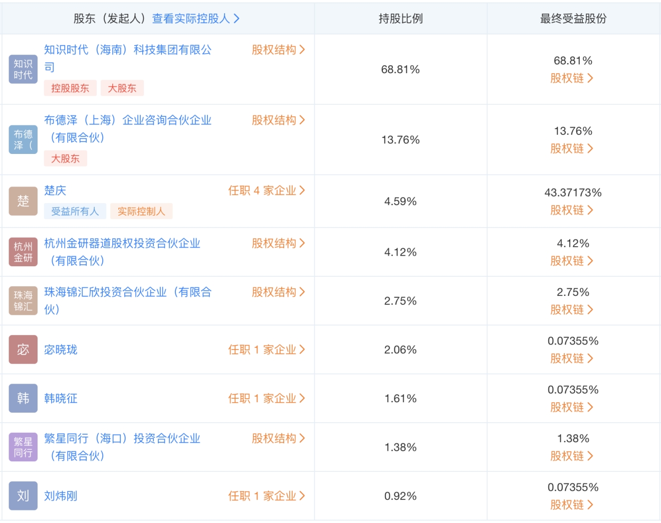 智识神工股东情况,数据来自天眼查