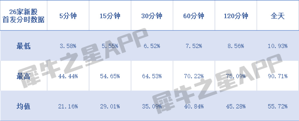 以近半年首发上涨的26只个股为例,当天的分时走势数据,情况如下: