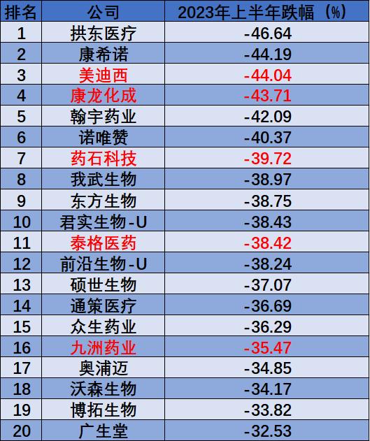 图: 2023年A股医药公司跌幅榜,来源: 锦缎研究院