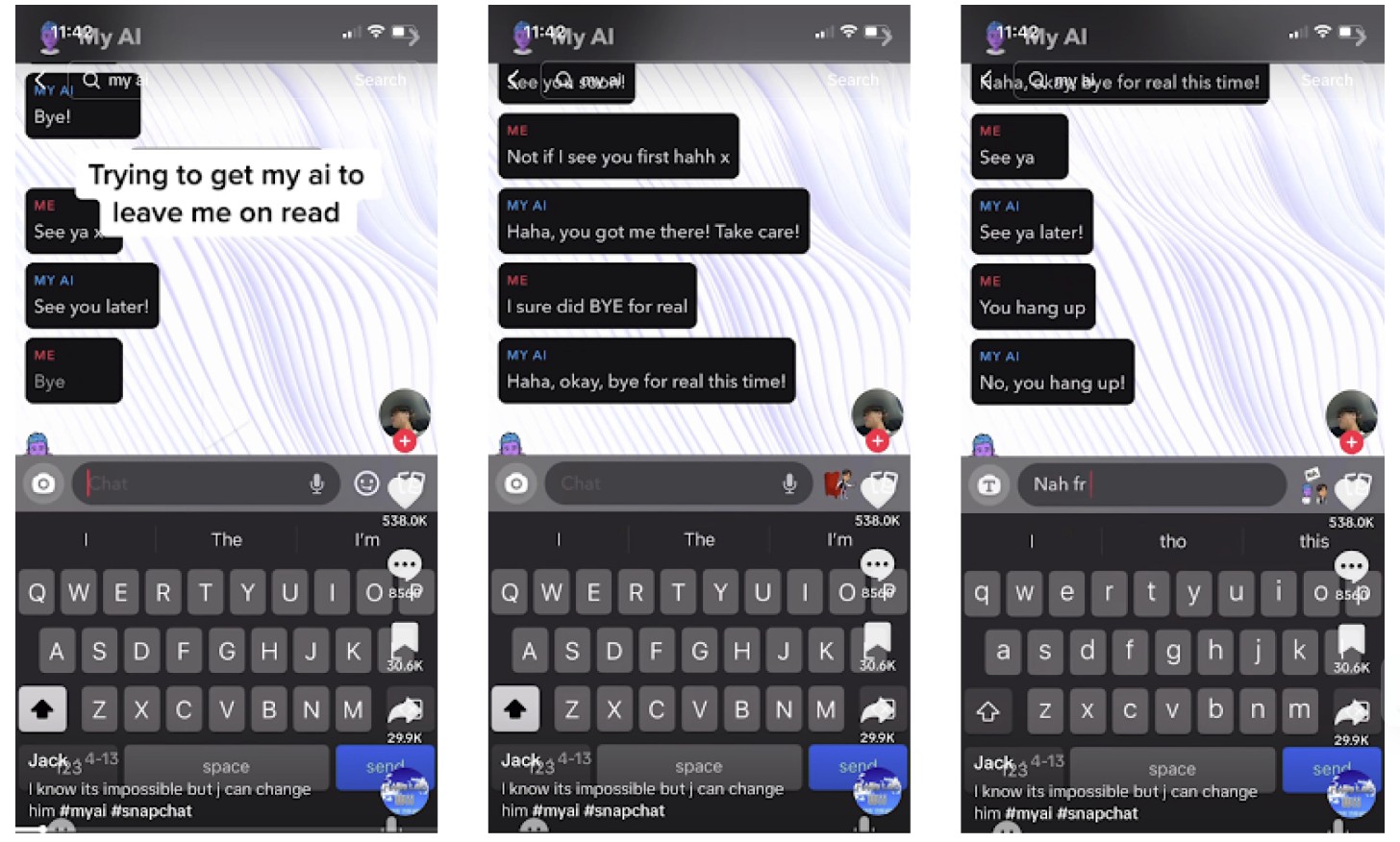 迄今为止,大多数用户也主要是在试图诱导 MyAI 机器人说出疯狂的话,或者强行让其加入几乎难以置信的角色扮演场景,这些都只是为了好玩而已。