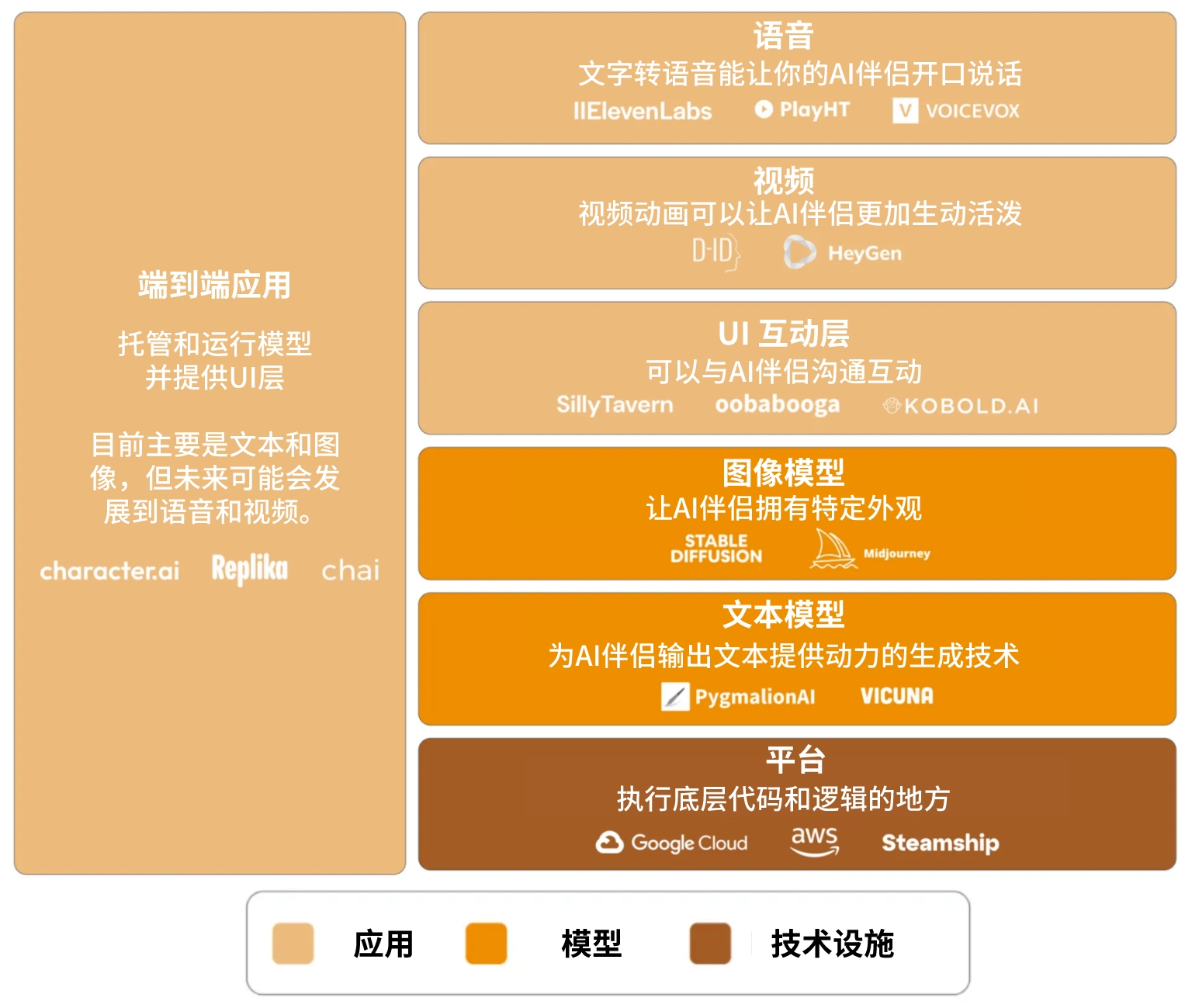 平台:这主要指的是执行人工智能伴侣底层代码和内部逻辑的地方。目前,虽然大多数开发人员仍主要在使用谷歌云平台(GCP)或亚马逊云计算服务(AWS)来部署和运行人工智能伴侣,但可以快速构建和部署 AI Prompt API 的 Steamship 低代码库(AI 女友 GirlfriendGPT 就是通过它来运行的)已经在慢慢普及,特别是针对这种特定伴侣的用例。