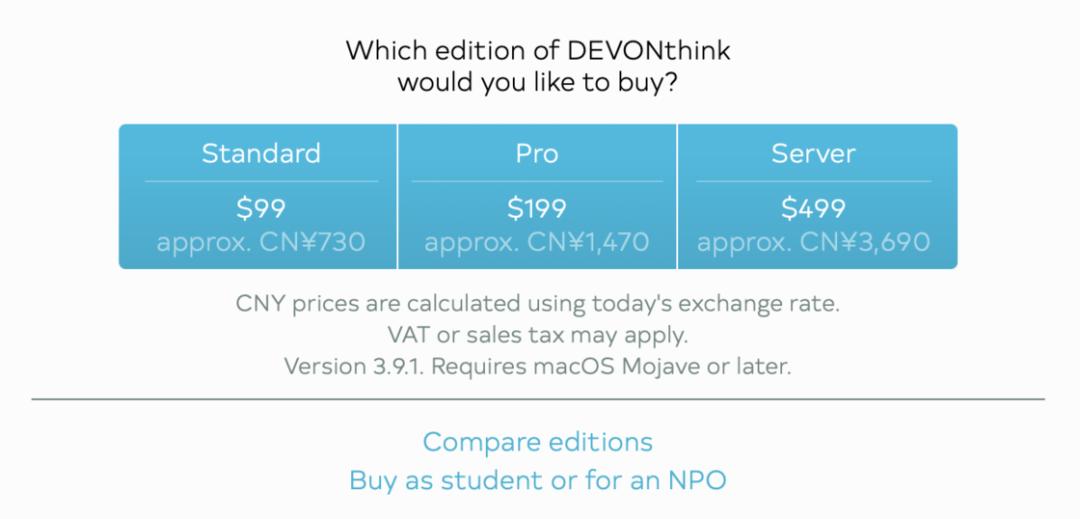 DEVONthink 不同版本的付费标准