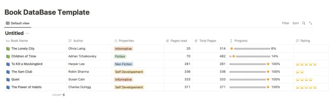 Notion 的数据库模版