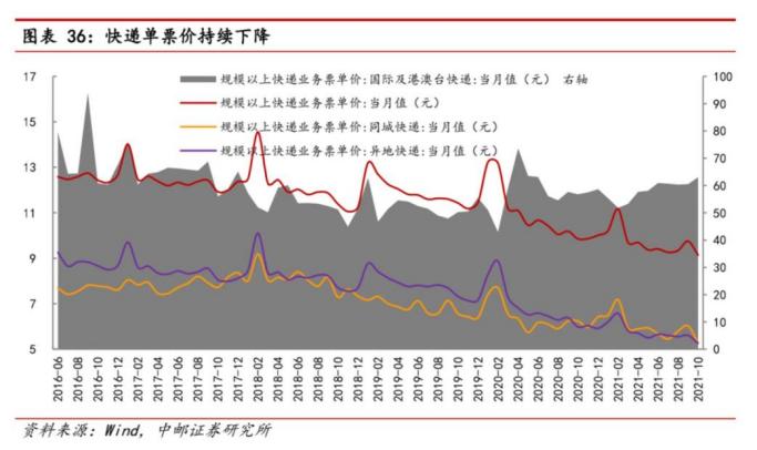 两轮价格战后,快递行业单票价格持续下降,图/中邮证券
