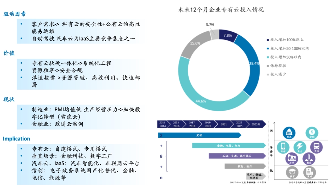 随着国家政策对数字化的纷纷加码,企业上云进程在逐步加快,尤其是像传统的制造业,其在生产经营上所承受的巨大压力,促使制造企业加快数字化进程。而国产替代在党政、金融、电信、电力领域已经得到验证后,也将迅速在其他行业铺开。