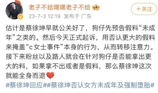 我以前老是吐槽娱乐圈处理危机事件,没有什么专业公关团队在做策略。这次蔡徐坤的事件,有非常浓重公关介入的气息。