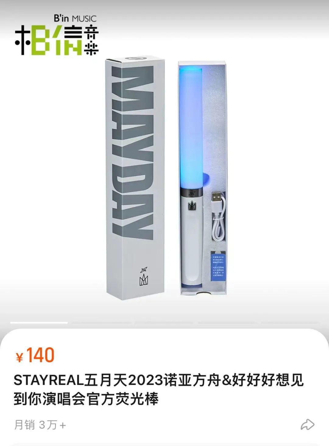 而且,国内目前大多数歌手的演唱会中控,是现场免费发给粉丝再回收的模式。所以当五月天演唱会售卖140元的中控荧光棒时,粉丝自然觉得太贵,根本不值得。