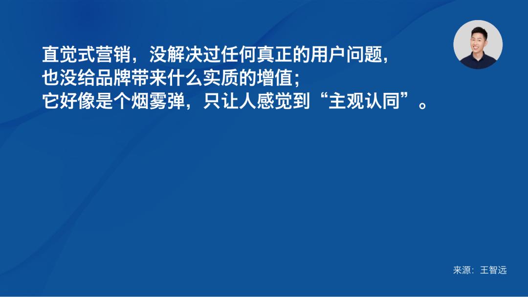 话说回来,我觉得直觉式营销,没解决过任何真正的用户问题,也没给品牌带来什么实质的增值;它好像是个烟雾弹,只是让人感觉到一种“主观的认同”,没别的了。