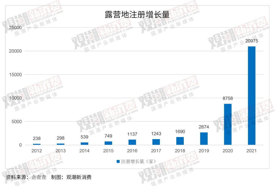 基础设施端,“露营地”相关企业数量爆发式增长,2020年新增8千余家,2021年新增2.1万家,截止目前现存5.2万家,预计我国营地数量未来将快速向欧美追赶。