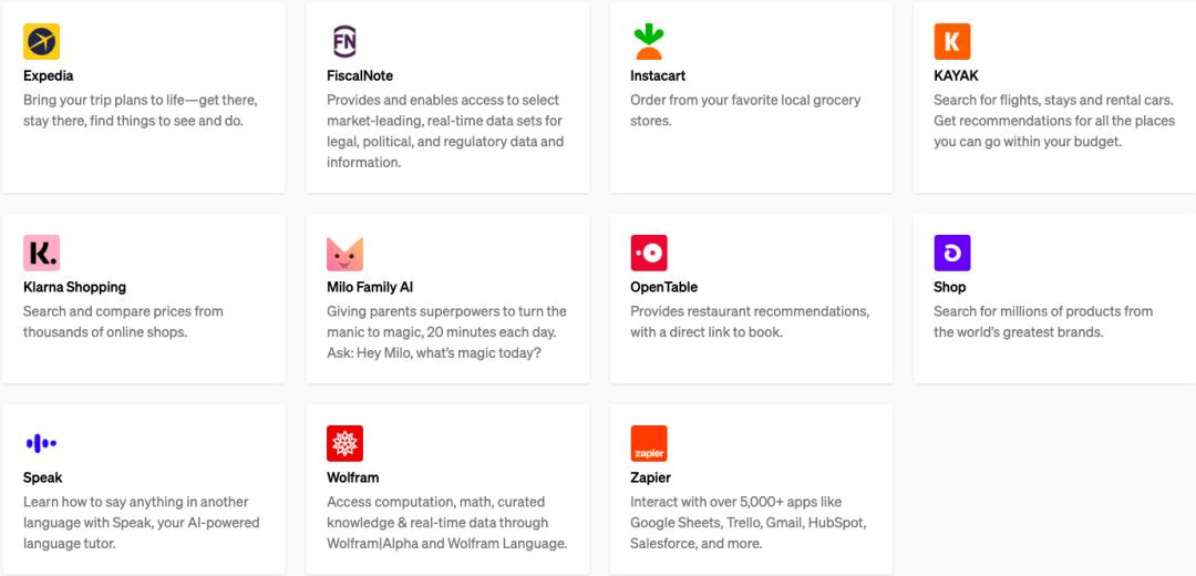 如果说API是让第三方应用接入ChatGPT的能力,而插件就是让ChatGPT接入第三方应用的能力。用户可以在ChatGPT中,直接通过插件与第三方应用进行交互,比如实现快速预定或购买产品。