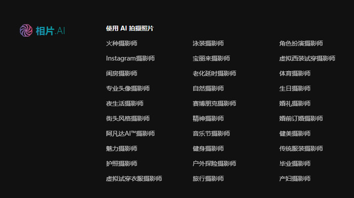 Photo AI 以不同题材摄影师分类的方式(下图为翻译),图片来源官网