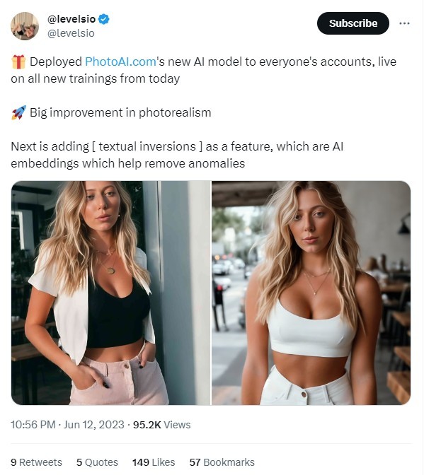 图片来源: Photo AI创始人社交媒体,表示仍在改善一些照片缺陷,例如手指