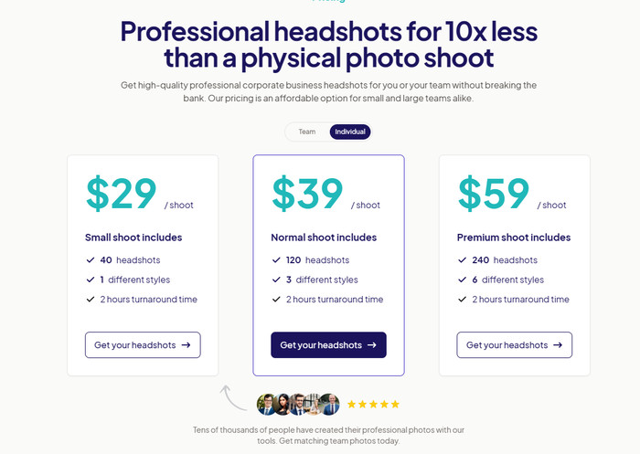 从收费来看,个人用户最低可以达到29美金生成1个风格下的40个头像,而公司团队采购则是每人39美金,可以生成每人120张头像、40多个不同姿势的照片。笔者认为,这个平台更适合企业需要批量给员工制作头像时采购。