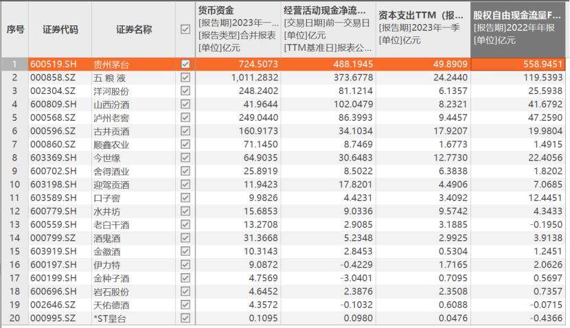 此外,从股权自由现金流(FCFE)角度也能看出酒企“闲钱”多。