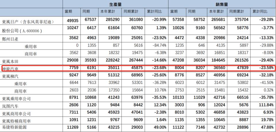 根据东风汽车集团发布的产销快报,今年1-5月,神龙汽车累计销量为36560辆,同比下滑23.58%。除3月以外,其余单月销量均未突破万辆。