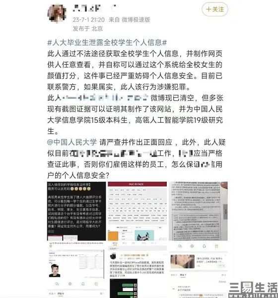 根据相关信息显示,其所制作的网站或抓取了该校14至20级所有学生的相关信息,而且非常详实,甚至包括了身高这一极少被采集的数据。而且有网友挖掘出的社交平台上的相关内容表明,他可能早在大二期间就萌生了给同学颜值打分的想法,并且在硕士期间与他人一起将想法付诸了实践。
