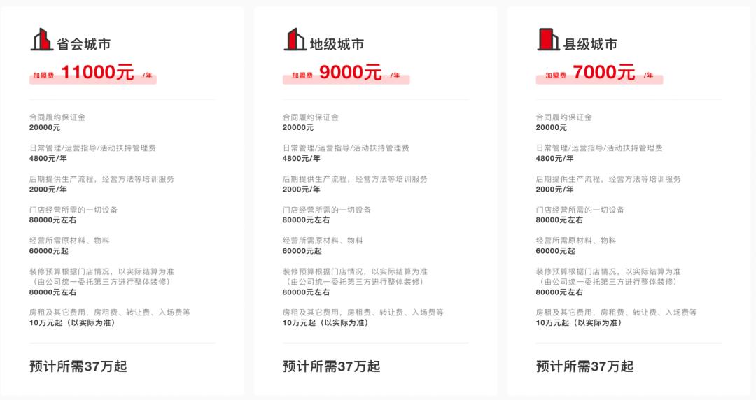 加盟费用 图源:蜜雪冰城官网